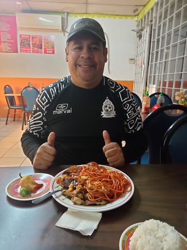 Don't let the rundown façade fool you this place is a not so well-known gem! My favourite Chinese in Mexicali. It's right around the block from me and I have to stop myself from getting it every second day... The quality and taste of their food exceeds your average takeaway styled Chinese store, even surpasses some of the fancier restaurants. Not to mention you get great value for your money. They have a family platter for ~$280, I buy it for my fellow workers every now and again. It's enough to feed 8 of us and they all love it also. Top recommendations to the Crispy Spicy chicken and the Pina Pollo. Noodles are better than most here too! Also to mention the woman running the place is very friendly and really appreciates her customers. Has never failed to give me top service and a few free spring rolls!