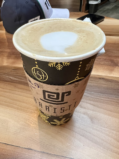 Great decor. Looks like they roast beans there. Ample seating upstairs, with a balcony. Waiting in the line was slow with just one person ahead of me. Waiting for my drink took about 10 minutes but I got to watch the barista prepare it so that was fun. Seating was great even though my table was wonky. Wi-Fi virtually non-existent upstairs which was disappointing.