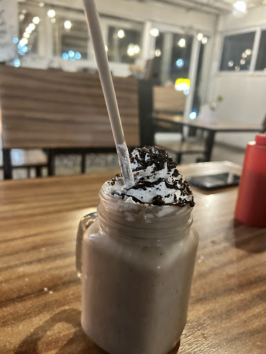 Te reciben amablemente, es un lugar grande perfecto para una celebración! Reunión con amigos, familia, etc. También puede ser un lugar ideal para una cita, algunos días tienen música en vivo y me encanto que tienen como un jardín, ese dia tenian concierto en el jardín pero estaba frío y pues iba con un bebe, así que no bajamos pero si vas con amigos, o tu pareja está excelente 👌 porque te prestan mantas cuando estas afuera en el jardín y sientas menos el frío, pero desde arriba se miraba muy bonito,es un lugar muy cálido. Ahora vamos a lo bueno la comida, la hamburguesa muy buena, los nachos con carne igual, muy ricos. Algo que me me gustó fue el tamaño de la bebida, aparte de que estan muy ricas yo pedi un smothie de frutos rojos y despues un chai para el postre, bueno me gusto que es bastante géneroso y te rinde muy bien. La pizza tal vez no es la mejor pero tiene buen sabor. Los postres deliciosos!! Comimos un pastel de chocolate y un flan de elote! Muy ricos!!!