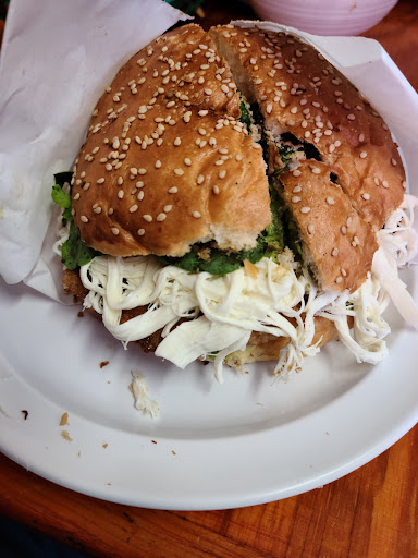 I ordered one Chicken Breast Cemita (Chicken Breast Sandwich made in the syle of Puebla), French Fries, and a freshly made mango juice. The Sandwich I had, had inside Avocado, chicken breast fillet, avocado again, onion, and Oxacca Cheese. Oxacca Cheese is not an overwhelming cheese. Its simular to string cheese. The sandwich also had this raw herb in it that I don't recognize. This herb did not support the taste of the sandwich so I removed it. Other than that the food is amazing. From what I recall, they only offer only two freshly made fruit juices, Mango and idk if there is an English name for it but they call it Tuna in Spanish.