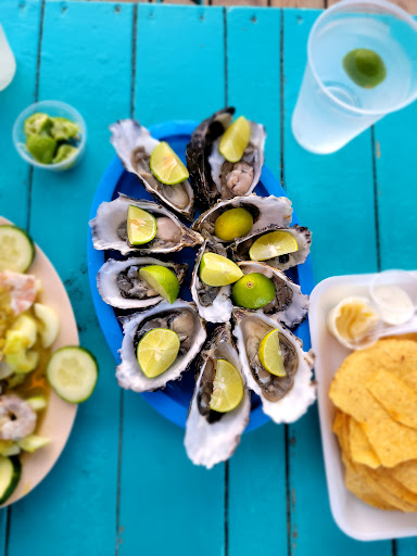 When we arrived, a guy outside convinced us to park and eat here. He told us that it would be 50 pesos. Once we parked, a different guy told us it was 100. 50 if we eat at the restaurant, 100 if it's service on the beach. Ok, fine. Our waiter was attentive and friendly. However, we were constantly hassled. On average, maybe every 5 minutes someone came by to try to sell us something. I ordered a michelada and shrimp tacos. I enjoyed the drink, the tacos were edible. Bland. My partner ordered fish tacos, a virgin daiquiri, and bottle of water. After two bites of her food, she immediately felt nauseous. We told the server it wasn't good and he took it away. I got one more beer(Tecate). When we asked for the bill it was $62! He said he couldn't refund the fish tacos, but even with it included, I can't figure out why it was so much. Shrimp tacos $8, fish tacos $10... which means $44 for 3 drinks and water?? I would not come here again and wouldn't recommend...