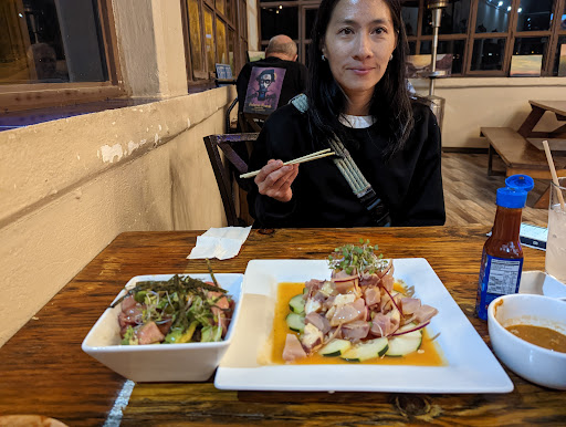 We had an excellent meal here last night. Tried the oysters on the half shell, blue fin poke, and Peruvian style Yellowtail ceviche. Oysters were fresh and served with three different bottles of hot sauce. Bluefin tuna was from a really great cut on the fish, high fat content and very creamy in texture. The sauce on the poke complemented but did not overpower the flavor of the tuna. The ceviche actually appeared to use aji Amarillo paste which is the real deal for Peruvian style ceviche. My wife and I shared all three plates and it was the perfect amount of food. I felt like the portion sizes were generous and consistent with the prices charges. A table near us had the guacamole and it was also generously portioned and looked really tasty. There was a live band out on the back terrace. We really enjoyed the set list they played. Overall it was a great evening and I would definitely come back next time we come to...