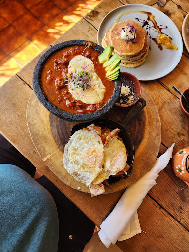 Read moreFound this place by walking the mercado, it is a little hidden spot. If you didn't know know it is here you'll miss it, my wife and I highly recommend it, we were there for breakfast, I had the PUNTAS, which is steak in a spicy sauce with red chilaquiles and an over medium pair of eggs on that (it was the bomb), my wife had the mole chilaquiles and they were also good, we share the elote (corn) pankakes, they ere good also, you guys must try this place. The service was great, our server, Roberto was excellent, friendly, explained and recommended dishes, a really nice guy. The place is located upstairs, on the second floor, I think that they need a little more signage, advertisement, to make the place a little...