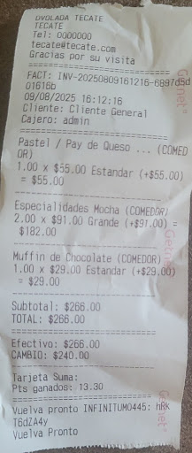 Read moreEl pay de temporada y el muffin me lo dieron todo duro, pedi 1 Latte Vainilla y 1 Mokka de chocolate oscuro y me entregaron 2 mokkas que sabian a pura leche, le comente que sabian a pura leche y le agrego ½ bote de Hershey's a uno y termino sabiendo a expresso con un toque de chocolate y al otro solo le agrego mas cafe pero ni asi sabia a algo, tambien le pedi que no estuviera tan caliente (ya que aveces me lo dan hirviendo y no le puedo ni tomar) y me lo dieron tibio llegando a frio, $266 pesos a la basura, la chica muy decente, es lo unico...