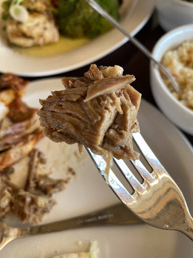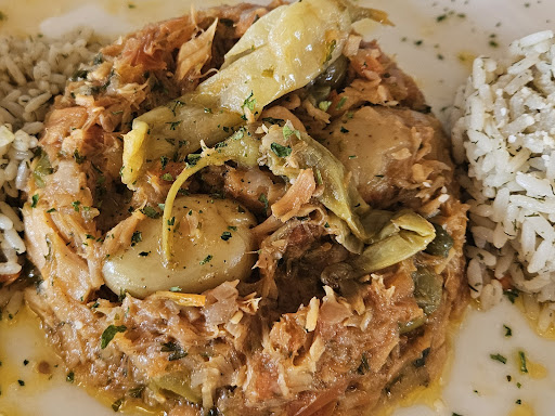 The food was so fresh and delicious! I love Spanish bacalao, but this greek version was just as delicious, a bit more delicate flavor. We all loved our meals: Appetizer plate (the best and freshest falafel ever!), the most juicy and tender Cordero and Lamb Chops, just awesome! Service was excellent, it was a VERY warm day, so I'd suggest maybe call ahead so they can start the AC in the closed room. The main restaurant is in the back! So even when the front look closed, just drive up and you'll get to the...