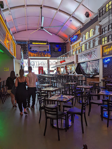 Read moreThis place is brand new to the Revu and the vibe on the inside is super cool with nice atmosphere and fun music. I was disappointed that there were only two dinner spots. I stopped to talk to the Wings, Burger, and Hotdog place and the staff member working there was really nice and explained everything to us on the menu, it just seemed pretty over priced. We then went across the way to the pizza place and it was definitely more reasonable. We got two slices of the BBQ Chicken Pizza and shared a pepperoni Stromboli. It was good, but not the best I have ever had. I was most disappointed with the bar staff. One gentleman did greet us and asked if we wanted anything to drink, I asked him for one second while we decided and he never showed back up. I definitely want o come back when they have a band playing because the stage and the setup...