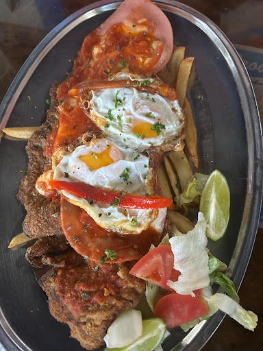 Read moreAl llegar te recibe un policia que hace de recepcionista. Mal, este puesto no es para el, su labor radica en resguardar el lugar y no hacerla de hostess y no esta entrenado para atender gente, al entrar se ve un lugar de mobiliario viejo, y la ambientacion no te envuelve en un restaurante argentino, se sienten algo encimadas las mesas. te traen rapidamente un licor bariloche como aperitivo, de sabor suave y agradable, la carta es extensa, pedi milanesa napolitana y mi acompañante matambre tiernizado, y dos empanadas como botana, estas estan de muy buen sabor impecable la textura y temperatura, la milanesa tenia buen sabor, nada extraordinario y el empanizado estaba algo pasado de tueste, se sentian extremos duros y poquito quemados, el matambre esta de buen sabor, nada extraordinario, para mi gusto le falta un poco de sazon, dde tomar sangria, esta pasable, de vino sencillo, a mi gusto le falto temperatura, de postre teien una carta amplia, pero ya no tenian mas que pies de queso, nada extraordinario, parecia de Costco, detalle importante es que es un baño para mujeres y uno para hombres, tienes que hacer fila para entrar o estar cazando que salga la gente, nos toco que habia un evento como de 40 personas y la entrada al baño era de locura, a pesar de estos detalles lo compensa la atencion del mesero que nos toco, una persona muy amable de caracter alegre y que hace ligeras bromas sin pasar el limite, nos trajeron un pastel de cortesia por un cumpleaños y fue un detalle muy agradable, gracias a estas atenciones es que creo que vale la pena el lugar, la comida es buena, sin ser extra ordinaria y el lugar se siente algo descuidado, con unas tuercas que el dueño apriete y haga un poco de inversion, este lugar se catapultaria, pero no se ven intensiones de hacerlo pues tienen clientela cautiva, le daria otra oportunidad a la comida, porque en atencion del mesero esta muy bien, los precios razonables, promedio $300 promedio por persona, incluye una empanada, plato sencillo, una...