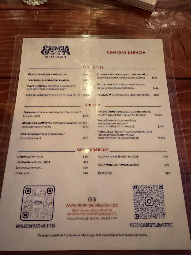 Read moreWe had an unforgettable dinner experience at Esencia del Valle. Everything from the service, to the food, to the ambiance was amazing. Edith was our host all night and was extremely kind and knowledgeable about the food and gave great recommendations. The food was great, we tried the pork belly appetizer, the ricotta ravioli, and the arrachera. A lot of the ingredients were fresh from their vegetable patch! We accompanied our dish with wine and mineral lemonade with berries which was refreshing. And donât get me started on the WARM bread with butter! The price of the menu items were fair and attainable compared to other restaurants in the area. We really appreciated that the chef came out to say hi to us and invited us to come back soon, and we will! Gracias...