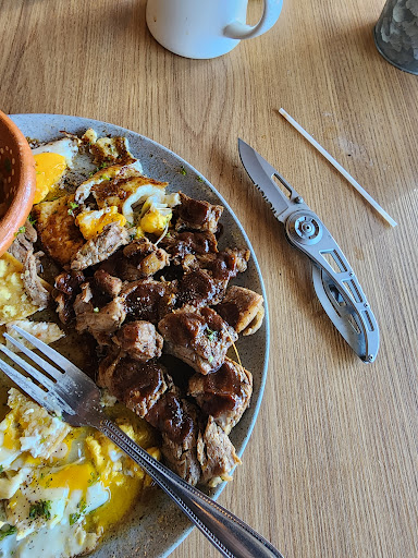 Read moreIt's definitely not the right place on a Sunday it's loud and annoying. The place is packed and lacking enough service. Got to give it to the staff trying their best in a losing battle with a bunch of premadona customers asking for all the usual nonsense and being extra. The food was not that great. I ordered the steak and eggs, and it comes with a side of refried beans and green chilaquiles. I literally had to pull out my own sharp knife to cut the rubbery steak, and the burnt over easy eggs were quite a feat being burned on the bottom and runny on top got to ask the chef how he pulled that off. The coffee was decent, a little weak for my taste, the decor. I never really care as long as the food is good, and today, it was a losing battle for my taste buds. Wont be coming back, and all the time I have been eating here, I keep thinking I should have gone to the restaurant on the opposite side of this little plaza so come here on any other day than a Sunday and give it a try to see if this little bistro is to...