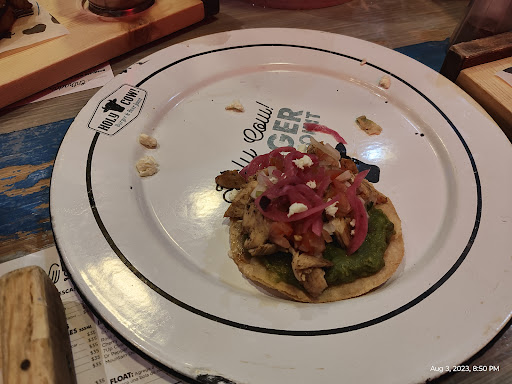 Read moreMuy ricas las hamburguesas, pensaba q era trampa lo de escoger el tipo de carne, pero sirven justo lo que pides, solo los complementos son engañosos, pedí un chile tatemado y ya venía dentro de la burger, ahhh y solo la mitad 😅, no advierten eso al pedir, tampoco que algunas no vienen acompañadas de papas, pedimos de entrada unos nachos, estaban deliciosos, el queso y chili Bean que utilizan tenía muy buen sabor, las bebidas lo que es refresco importado no tenían disponible en su momento, el té estaba muy concentrado el sabor, me atrevo a compararlo con los de sobre cuando no usas la medida correcta de agua, limonada de frutos rojos....solo se sentía el sabor de la fresa, eso sí las malteadas deliciosas 🤤, creo q eso fue lo que salvó la cena. Si quieres comer aquí, ve mentalizado que puedes durar un rato esperando mesa, nosotros fuimos un jueves, estaba lleno, había 40mins a 1hr de espera para tener mesa, corrimos con suerte que fue menor el tiempo xq varios dieron su nombre, pero declinaron esperar, no nos agrado ver tanta multitud en la entrada para dar sus datos, solo uno por familia no viene mal, además que estaban todos amontonados afuera y no podías ingresar, le preguntabas a la gente si hacía fila, pero te ignoraban, de dos recepcionistas, solo una estaba agilizando la fila, del servicio, nos tocó un buen mesero,amable, rápido y algunas dudas si las aclaró, incluso nos ayudó para armar nuestra orden, eso sí tardo en llegar los alimentos, una mesera se equivocó y estaba a punto de dar nuestro pedido a otros, les falta algo de organización, tener el menú físico a la mano, ya que el menú digital faltan varios alimentos y snack, nos dimos cuenta que atienden plataforma para enviar la comida y ahí si tiene variedad el menú 😅. Vale la pena el sabor de las burger y malteadas, pero el tiempo de espera y la falta de variedad en el menú digital le baja...