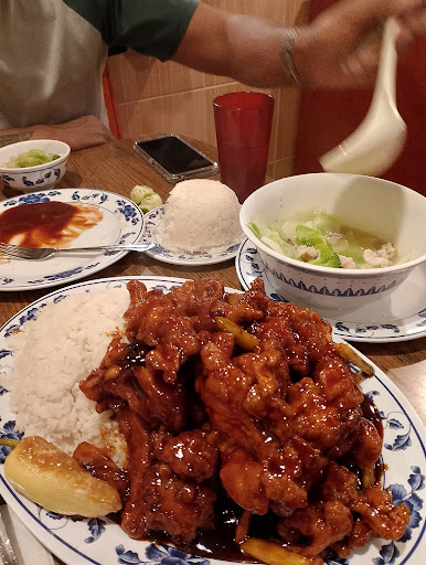 Es un lugar bien iluminado,con música, bien acomodado el mobiliario,los baños limpios al igual las mesas,al entrar tiene un lugar con mesas y asientos como reservado al lado derecho ,al pasar de ahí es mas amplio las mesas como para mas personas o familiares,la comida es deliciosa🤤😋 pedimos combinación china en plato,trae camarones, carne de esa roja puerco, pollo,res ,con salsa color negra y vegetales con arroz frito, además de medía jarra de té salen varios vasos con hielo riquísimo,la atención es muy buena el muchacho muy atento, amable y sonriente,se nota cuando les gusta su chamba porque para ver malas caras no estamos verdad?🤔🤭😁😂 Me da empacho 😅🤣 se lo recomiendo además que no va pagar parking,...