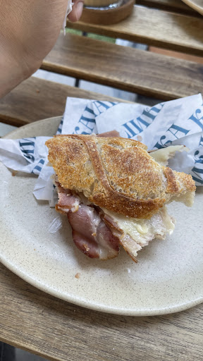 Comida: Excelente. De comida como tal pedí un sandwich de jamón, queso y tocino el cual estaba muy bueno el pan me gusto que parecía estar echo de masa madre y no tenia mucho migajón, excelente sabor, también pedimos un pan tipo hojaldre y un pan de muerto ambos con un sabor excelente sin empalagar con lo dulce, las bebidas me parecieron normales similares a otros cafes.