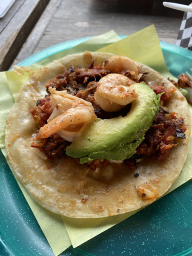 La comida está muy buena y exquisita. En especial los tacos, les recomiendo el taco Cachetón y el Kami Especial de Camarón. Precios accesibles y los tacos estan en buena porción. Lugar limpio y agradable en un area de food trucks. Cierran temprano. Recomendaría solo mejorar en la atención al cliente, llegamos ya casi cuando iban a cerrar y el trato no fue del todo agradable, y también les recomiendo revisar su cuenta por que por casi nos cobraban demás. Pero la comida es buena, lugar...