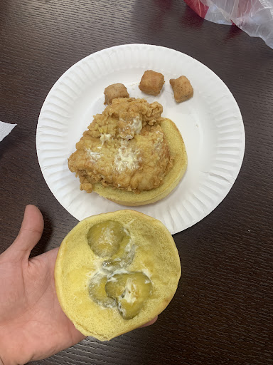 25 minutes for the chicken sandwich, the one on special? gave us no napkins for a fried chicken meal? Who can eat fried chicken without napkins? Most of the employees were standing around joking around, not working. 25 minutes for an order is absurd when the drive up orders are taking under 3 minutes. also the place was freezing cold, wore a jacket in June and was...