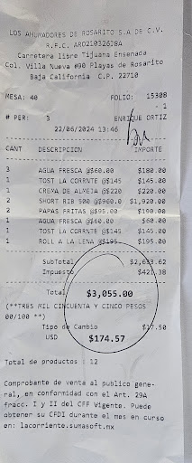 Read moreNice atmosphere, good, attentive service and mostly good food. The "La Corriente" seafood tostada was really good. Clam chowder in a bread bowl was also good with lots of tasty clams. Unfortunately the fish filet I ordered was "off" but the waiter graciously took it back and I ordered another tostada. Beef ribs were slow smoked and delicious but way too expensive in my opinion (960 pesos per order and didn't include any sides, add 95 pesos for French fries!) So two orders of ribs and fries was over 2,100 pesos, yikes. Note: the menu does say "para compartir" but even 480 per person without any sides is quite a lot. Overall good quality, good service and most of the other menú items were reasonably priced. I'll definitely go back and try...