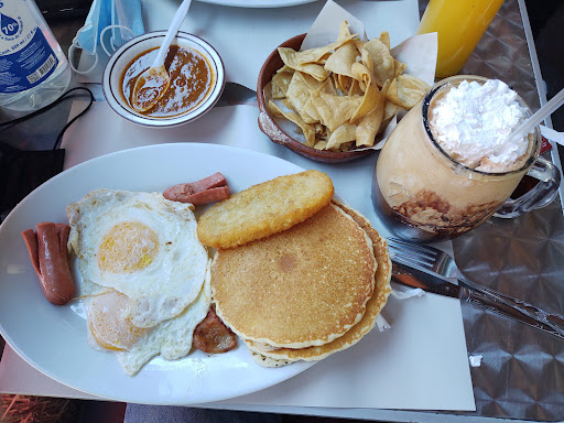 Read moreLes daré un rating de 2.5 solo porque el lugar estaba algo limpio y fachada/apariencia del lugar presentable y atractivo. Aunque en mi opinión lo que es más importante, más importante que un lugar bonito, es el sabor de la comida, porciones adecuadas de acuerdo a sus precios para cada platillo. Quedé muy decepcionado al sabor de la comida muy normal, equis, para un precio muy elevado muy caro a un desayuno que mejor voy a preferir hacer el desayuno en casa. Un punto negativo fue que en vez de salchichas de desayuno (breakfast sausages) de cuales me gustan mucho, me sirvieron salchichas de hotdogs de cuales no me agradaron ni van con el menú original de...