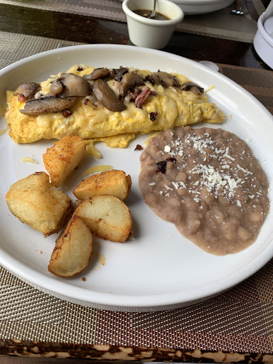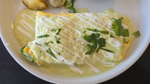 Read moreThis restaurant is not right off the main roads, but definitely worth the drive over a block to get to. It has a modern-Mexican architecture that looks very upscale. Entering we were given a very welcome greeting and seated by the window. All good so far! I had the Poblano omelet and my Michael had the Carne asada omelet. Look at the pictures...they both tasted as good as they looked! The Poblano had chilis (not spicy) and corn, with a delicious sauce. The Carne asada was also perfect. They both came with homemade tortillas, potatoes and beans. Everything was the perfect portion, beautifully plated, and obviously chef created! I never turn down an upscale offering, so when desert was recommended, I had to say yes. It was a Kahlua muffin with ice-cream. Drizzled with cherry and caramelized. Think it was good? Yes, perfectly baked warm muffin and melting ice cream. This restaurant was a great modern Mexucan take for breakfast that will leave...