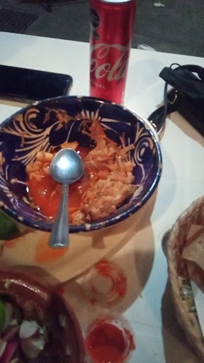 Pedimos Enmoladas (enchiladas de mole), tostadas y pozole. Ni las enmoladas ni el pozole tenían sabor. Realmente lamentable el sabor, el servicio no es malo, aunque podrían mejorar mucho, el precio en relación a la calidad es dispar, hay lugares con precios un poco más bajos y con mucha más calidad en el sabor. Lo que si hay que resaltar es que tienen una salsa...