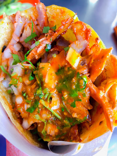 They have all the meats, asada, adobada, suadero, cabeza, tripa, chorizo, lengua (no pollo). My personal favorites are cabeza, adobada, asada and suadero, though I have been known to order 1 of each. I have always hoped they would carry huitlacoche, but thatās a bit much and not in the style. They do tortas, burritos, quesadillas, mulitas, vampiros. The adobada is lit, red from the achiote, crispy from the fire roast, tender, juicy, fuuuuuggggghhhh, so good. The asada and suadero are not dry at all. The cabeza is amazing, not fatty.