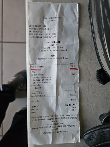 Read moreEstá bueno, y uno de los pocos lugares a la redonda en dónde puedes comer barato. Por ejemplo, encargando un cheese bread de 55 pesos y añadiendo crazy breads por 20 más. Te llena bastante. Lamentablemente es otra de esas sucursales sin mesas adentro, por lo que toca comer al solazo o llevarte la comida cargando. Es una lata. La cajera no me quiso hacer válidos los crazy breads después de no ofrecérmelos alegando que de todos modos ya no había (mentira), burlándose encima de los clientes, pero en fin, nada que sorprenda