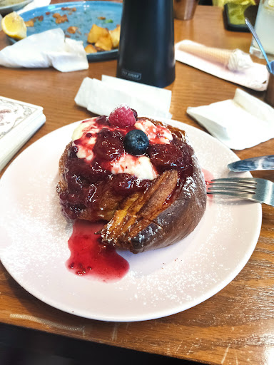 Sobre la comida : Las bebidas que no son de alcohol dejan mucho que desear, el chai , el late e incluso las limonadas no tienen buen sabor La comida saben bien, tiene un buen precio y las proporciones son muy buenas Postres: los roles de canela tienen un mejor sabor que el de cheesecake