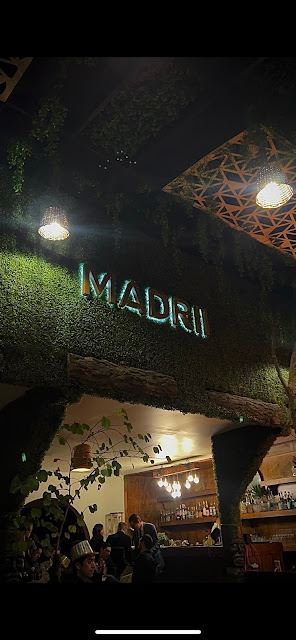 La cena de Año Nuevo consistiría en una cena de 6 tiempos, como entrada la ensalada MADRII, una crema de brócoli con nuez de la India, 3er tiempo un hongo portobello con queso, 4to Salmon noruego en salsa de frutos o brisket al horno en salsa de habas verdes, 5to y último un pastel de crepas, todo esto acompañado de bebidas y maridajes incluidos en la cena por 1,750 por persona, realmente todo mantuvo una calidad estándar muy alta, difícil decidir un platillo número 1, 2 o 3, estuvo increíble el lugar (Comida 10/10)