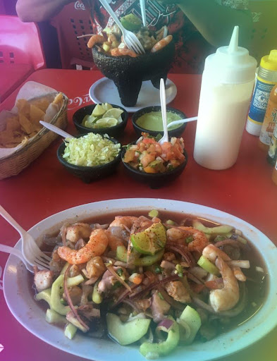 I have been eating at this restaurant since about 2017. Not frequently, but when in the area, it's my go to spot. The establishment is alright for it's location. The food is great and well-priced. The seafood "consome" (broth) they give you is out-of-this-world. It almost tastes homemade. It's not only free, but you can refill. They're small cups, of course. I always get oysters, "pata de mula", green "aguachile", and "campechana coctel". I give 5 stars to all the plates mentioned. The service is great. They give you space but are very attentive. Can be slow if understaffed. I give the atmosphere 4 stars because there could be some music, at least. Overall, if you're in the...