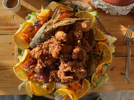 Read moreEstá algo escondido, lejano de todo, pero ya que llegas al restaurante, y sobre todo, subes hasta la terraza del tercer piso y desde ahí tendrás una vista panorámica hacia el Océano Pacífico, el detalle está en que hace mucho viento y cuando estás comiendo, como te sirven en platos desechables, de repente tu plato sale volando porque se embolsa el aire y adiós comida, estaba comiendo ceviche de camarón y el aire me voló el plato y me bañó todo de salsa y jugo, digo, no pasó nada, fué solo un incidente menor, pero se los cuento para que no los agarre desprevenido. En el tercer nivel, lo malo es que no hay sanitarios y tienes que bajar al segundo nivel por una mini escalerita súper angosta de caracol y si ya andas pistiadón, te puedes resbalar. Puedes pagar con...