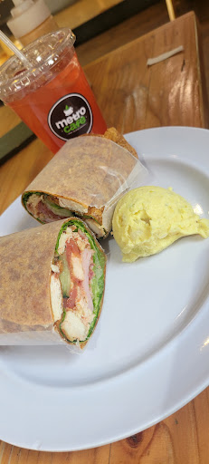 Aunque su nombre tiene la palabra café, es más bien un lugar de comida ya que tienen un menú bastante amplio. El servicio fue excelente. El wrap, la ensalada, el café latte en las rocas, el jugo y la sopa de champiñones que parecieron muy ricos, además de que en menos de 10 minutos ya estaba todo servido.
