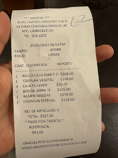 Read moreSi vas a comer ahí, ten en cuenta que te van a tratar bien mal, con mala cara y una prisa. Mi novio y yo fuimos y el estaba distraído y una de las que le cobro en tarjeta lo tocó con la mano así como pegándole con el dedo, no fue para decirle una sola palabra para que volteara. Ni siquiera nos habló ni contestó con palabras al cobrarnos. Le pedimos dos cajas para llevar y dos vasos ya que habíamos pedido mucha comida. No nos dijo que se nos iba a cobrar, y además nos cobró los dos vasos de plástico para llevarnos el te que nos quedó. Eso fue lo de menos, lo que más me molestó es que además de cobrarnos eso, se cobró la propina sin preguntarnos, o a menos que nos haya cobrado por usar la terminal lo cual es ILEGAL! En ningún lado deberían cobrarte por querer pagar con tarjeta! La comida 10 /10 nos encantó. Pero el servicio muy...