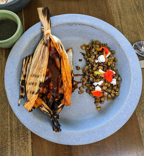 The complimentary appetizer and the tamal were both delicious, but the mains really fell flat.