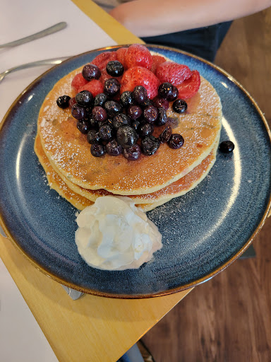 Fue una desiluciĂłn total, yo fui anteriormente a comer pancakes y todo bien en dos ocasiones. EstĂĄ tercera pedĂ un omelet de champiñones y espinaca, totalmente sin sabor alguno cero sal, dije bueno estĂĄn cuidando la "sana alimentaciĂłn" pero entonces deberĂa existir una coherencia con todos los productos. De guarniciĂłn no miento y no exagero partieron una papa en cuatro pedazos como que las metieron a cocer (porque venĂan a medio cocimiento en agua) sin ningĂșn tipo de guisado o sal o pimienta o paprika algo que les diera sabor o les quitarĂĄ el sabor a agua, quiero pensar que la guarniciĂłn se les acabĂł guisada y por eso tardaron mucho en traer la orden y cuando la trajeron fue eso los pedazos de papa sin pelar, pasados por agua a medio cocer porque se veĂa el centro crudo, tenĂan pedazos de cebolla y de pimiento verde cortados a KARATAZOS igual sin ningĂșn tipo de sazonador, sal bĂĄsica o algĂșn tipo de grasa, aceite de oliva o mantequilla algo que le diera algo de sabor, fue muy triste, lo Ășnico medio rescatable fue el waffle que me dieron en el omelet ya que lo incluĂa y este se les pasĂł de tueste un poco pero ya con la miel y la mantequilla pues se podĂa comer. PedĂ un jugo verde que estaba medianamente ya que tenĂa jugo de naranja no era exactamente verde đą la verdad fue muy triste solo comĂ el omelet porque tenĂa mucha hambre, olvidaba decir que le puse un poco de salsa para ver si el sabor se componia pero estaba muy muy picante. TODO MAL. Del mesero no me quejo fue muy bueno y atento pero la...