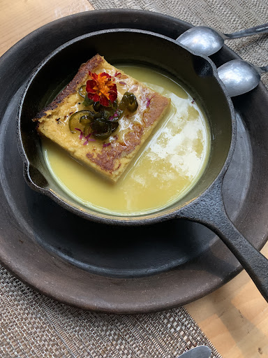 Dessert was special - corn cake with candied chilies 🌶 - not too sweet - a little bit spicy. Warm. It was perfect for this chilly evening.