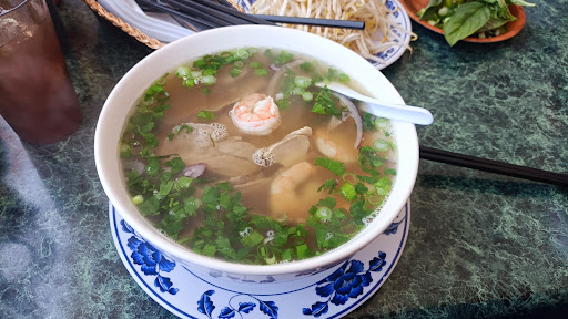 So far the thepho with steak is good a lil bit greasy for my taste I liked it but I think it could be better if they add more steak and maybe put the cilantro and the cebollines on the side too. Very hot when served. So far I will come back to eat here once in a while but not the best one I have had. Mint was missing the Chile's should be round not cut for my preference. Good clean place nice quiet music enjoyable. The spring rolls love it very unique I do not like the peanut butter sauce with it but it's good. Lots of parking. It gets warm inside...