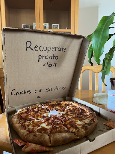 Marque para pedir una aclaración a lo que Gisele nos contesto con un simple, NO TENEMOS PIÑA! Le dije una y otra vez que no solo era la falta de piña en la pizza, si no que específicamente le pedimos que no pusiera jamón si no tocino, a lo cual nos continuaba preguntando cual es el problema.