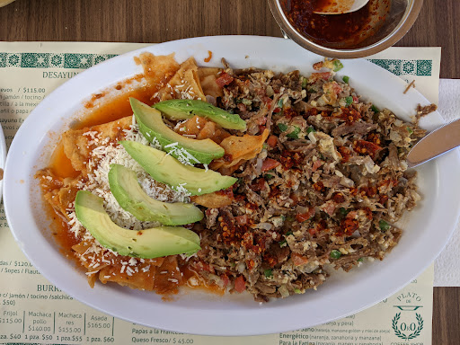 This quaint place in Zona Centro nailed it in all the right áreas: Friendly staff, clean establishment, private parking (6 spots available), dog friendly, and of course, DELICIOUS food. I was greeted by a nice lady upon arriving at their entrance who was ready to take my temperature. However, I kindly turned it down as I opted to instead sit outside in their patio area which is adjacent to their parking lot. Immediately, I was served a bolillo (very soft salted white bread) and a small dish of red salsa which I thought was awesome (instead of the typical tortilla chips). I ordered their machaca with chilaquiles, beans, and a side of avocado. The portions are GENEROUSLY served. Their machaca was delicious; not too dry but not too watery either and the perfect amount of spicy. Their chilaquiles? PERFECT just the way I like them with a little bit of a soft crunch. To top it off, my server came with a small bowl of water for my chihuahua🐾. Overall, a great experience and I will definitely be coming...