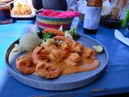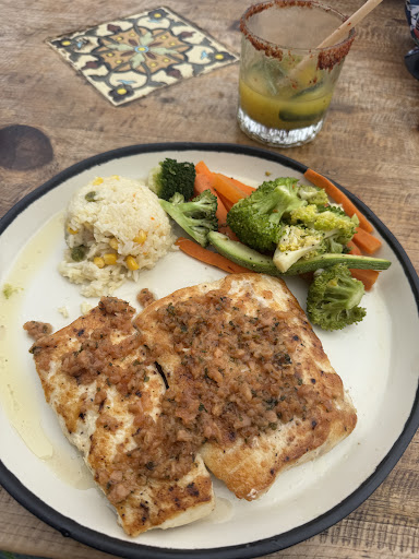 Read moreLa verdad no recomendaria ir a este restaurante; El ambiente, a pesar de ser ruidoso puede llegar a ser agradable para ciertas personas, pero el servicio y la presentación de la comida... Una ofensa. Empiezo con el hecho de que si pides agua natural te la dan en una botella de plastico ni si quiera un vaso de vidrio o algo, o sea, en serio no les cuesta nada lavar un vaso mas como para servirte asi. Ademas, los cubiertos venian envueltos en servilletas de papel, entiendo que es mas conveniente pues son desechables, pero por favor, arruinan todo el ambiente mexicano que tiene el restaurante. No mentire diciendo que la comida era mala pues no estaba mal, pero la presentación... 💀 Pedi el salmon bañado en crema de mariscos, toda la comida estaba amontonada en un platito que nada que ver, y la verdad eso de "bañado en crema" es mas como "empapado en crema" por que pareciera que tienen escases de crema. Junto con el salmon venia un poco de langosta junto con mantequilla derretida, que venia en unos contenedores de plastico, o sea segun yo, no estoy en chick-fil-a como para que me den aderezo asi, ademas de que eso no era mantequilla, era margarina y de la mas corrientita. Mi papá pidio la arrachera porque decian que ahi tenian muy buena arrachera pero no, la pidio roja y se la dieron 3/4, pero bueno, entiendo que ahi saben mas sobre pescados que carne. Los camarones empanizados estuvieran bien si no fuera porque te los dan con unos sobresitos todos ridiculos que parecia que estuvieramos en KFC! Por ultimo, pedimos al mesero que nos descorcharan una botella de vino que nosotros llevamos y cuando llego la hora de pagar nos cobraron 600 pesos por el descorche (que ademas parecia que el mesero estaba sirviendo una coca-cola, no vino). Obvio en todos los restaurantes cobran el descorche, usualmente son 200 pesos, pero nunca esta cantidad, y mucho menos por un descorche tan malo! Al parecer ahi el precio del descorche varia dependiendo de que botella sea, una ridiculez. La gente solo viene aqui a tomarse fotos y creerse finos, pero o sea si quieren una foto en un espejito todo sucio mejor tomensela en su casa en vez de hacer el ridiculo subiendo fotos de un restaurante que parece fondita 😬 O mejor vayan a otro mejor restaurante, probablemente les cueste lo mismo y coman mejor con un...