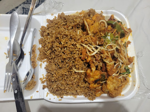 Read moreEsta horrible. Hice un pedido por uber el cual sorpresibamente fue entregado al repartidor en un par de minutos, luego cuando llego sentí el paquete muy ligero en comparación a la comida china que suelo comprar. Bueno, ya en mi casa lo abrimos y era puro arroz, literal el pollo que se mira es lo que había porque abajo de eso era arroz, y dijeran que mínimo estaba bueno pero nel, el pollo sabia a refrigerador, recalentado y algo quemado; el arroz esta negro e insípido, como que lo llenaron de salsa de soya y aun así no sabe a nada. La verdad lo terminamos tirando y metidos la queja en uber, lo bueno es que nos hicieron el reembolso.No...