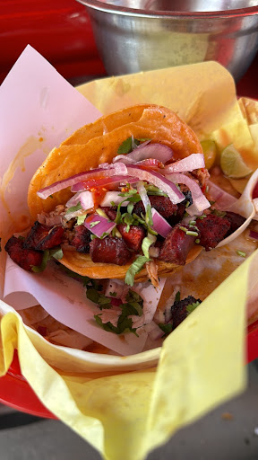 Es un lugar muy agradable para ir a desayunar, se ponen desde las 7 de la mañana y el “estacionamiento” disponible es directamente proporcional a su capacidad de atenderte. Tienen la opción de pagar en efectivo o tarjeta (incluso American Express). Adicionalmente los puedes encontrar en Uber Eats, si eliges esta opción… lo mejor es que pidas en formato de “lonche” para que no lleguen aguados tus tacos. Sus despachadores son muy atentos y con el tiempo aprendes su lenguaje para el “menú secreto”: Empercherado: una de tus tortillas será blanda y otra dorada. Chichabirria: tu taco será de birria con chicharrón en salsa etc El agua tiene refil y pedir un “quesataco” en 2023 tiene un costo adicional de solo $2.00...