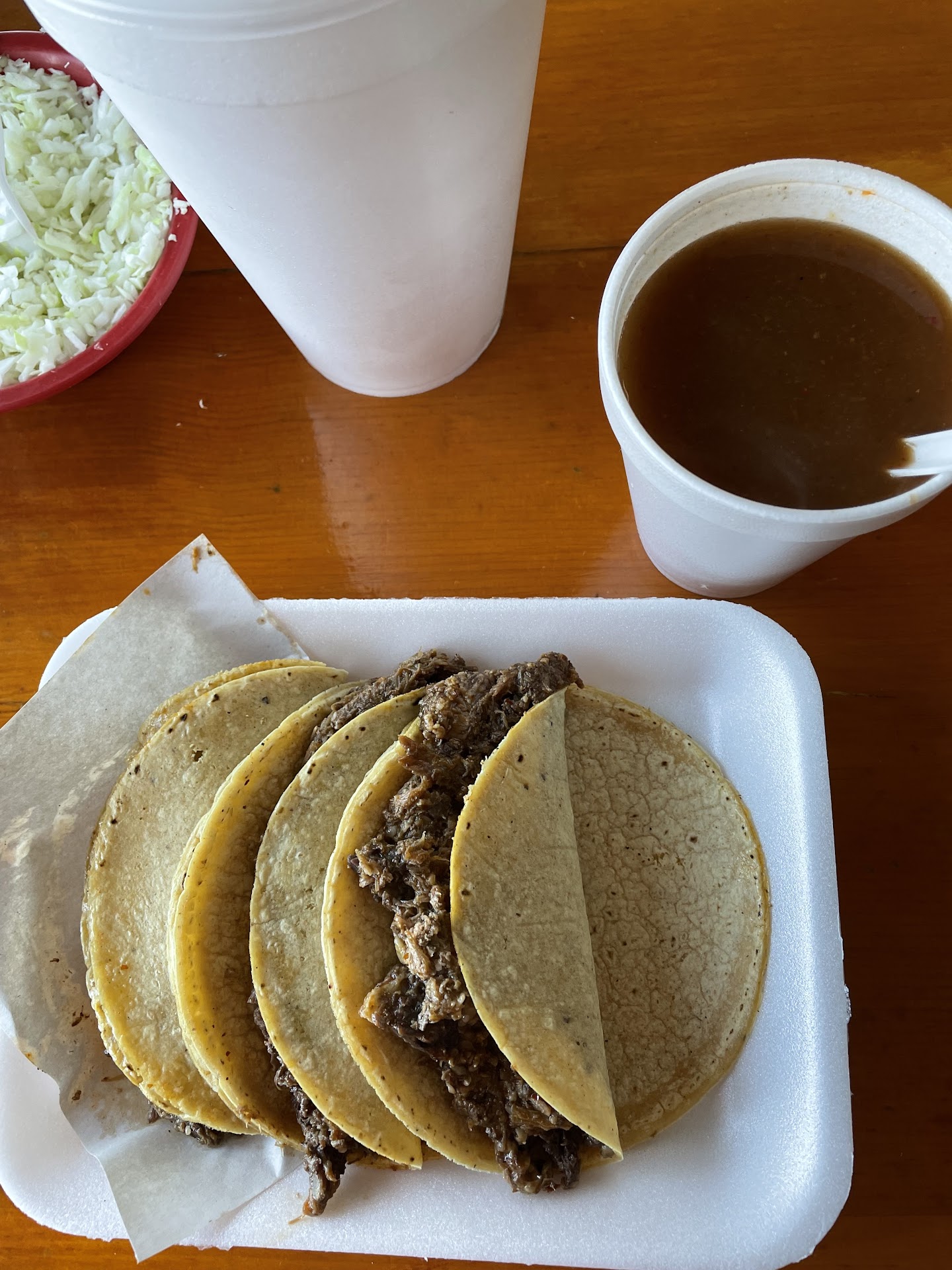 This is, by far, the best Jalisco style birria taco place. They have borrego (lamb) and cabeza (cow's head) options, and they're both delicious. This is the place to go for either option. Fantastic cure for a hangover. Weekends get packed, so be ready for that, but they do offer drive thru like In-n-out, very well coordinated. I highly recommend this place. It's a staple...