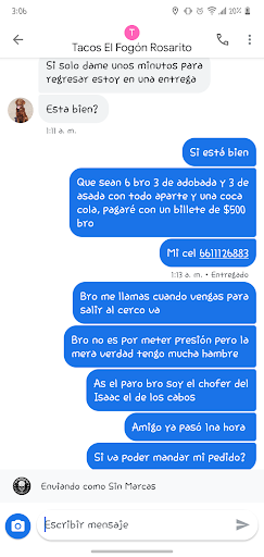 Read morePeor servicio de mi vida, no pongo 0 estrellas porqué no se puede, una grosería. Pedi mi orden, una hora y media me tuvieron esperando, ignoraron mis llamadas, después de literal más me 10 me contestaron y solo se escuchaba música, me dijeron que ahí iba y no contestaron nada y nunca llegaron. Ignoraron las llamadas, me dejaron esperando y nunca siquiera dijeron nada No lo...