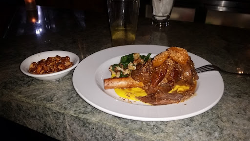 The ambiance is great with lots of greenery and a waterfall in the back room. The service was outstanding. The have a great menu with a selection of steaks, lamb seafood, poultry, etc. Service started with table side made salsa that was both spicy and smoky. Entrees came with a smoky been soup which was great and a basic salad. Personally, I think something other than iceberg would have been better. We ordered a filet, meat sampler (ribeye, lamb and quail) and cowboy steak (ribeye) med rare. They all were on the rare ide of rare - very cold center. a little too rare for me even. But they added heat and always better to be able to add more heat. I didn't think the meat was seasoned well. Definitely needed salt. It's cooked over oak hich I love for brisket but seemed to over power the steaks a bit, especially without more seasoning. And I didn't think you cold water down a vodka martini, but apparently you can. All in all, we enjoyed it and it's reasonably priced and with good quality meats but just need to tweak the...