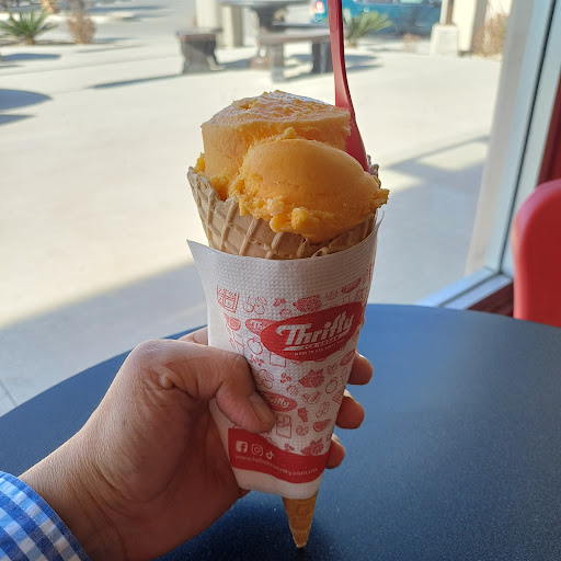 Read moreLas nieves de Thrifty son deliciosas, en especial la de naranja, ¡altamente recomendable! Además, el waffle está crujiente y combina perfecto con los sabores. Como área de mejora, sería genial que ofrecieran wifi gratis. En general, un lugar muy bueno para...
