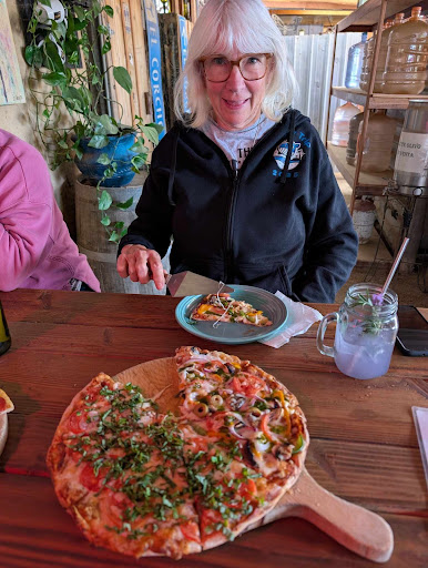 Pink Corks in a Rustic Setting seem to capture the heart of the entire Corcho Rosa experience. The expression "A Woman's Touch" is fully realized here in this place. Sitara Perez entered into a tough and dusty landscape and transformed it, by the strength of her own hands and her own vision, into an eclectic visual oasis for the seeker of wonderful wines. Her wines are many and varied; from rich, explosive Reds to a new Summer Wine you could literally drink with your breakfast. She is one of the completely hands-on winemakers in the Valle and her care and passion for every aspect of the process, from vine to glass, is like a mother who lovingly trains her young children and then releases them, watching as they mature into their own personalities. Such is wine. Rancho Corcho Rosa is warm and homey with a small bodega and tasting bar that is far from the commercial, tourist world. Plus a couple friendly Rescued Dogs which complete the picture. The materials are mostly re-claimed and re-purposed making it feel as though it grew out of the very earth. You'll find offerings of home-baked breads and local cheeses to enjoy as you taste the wines. Even if Sitara herself is not pouring for you her other hosts are equally knowledgeable and welcoming. Wines and Winemaker are like Bright Pink Flowers in the desert. You will fall in love with them both and will certainly want to come...