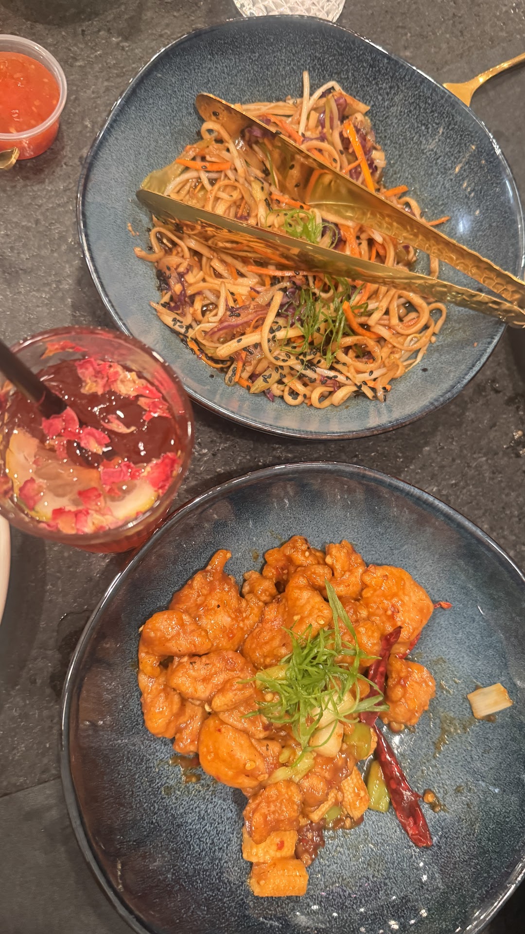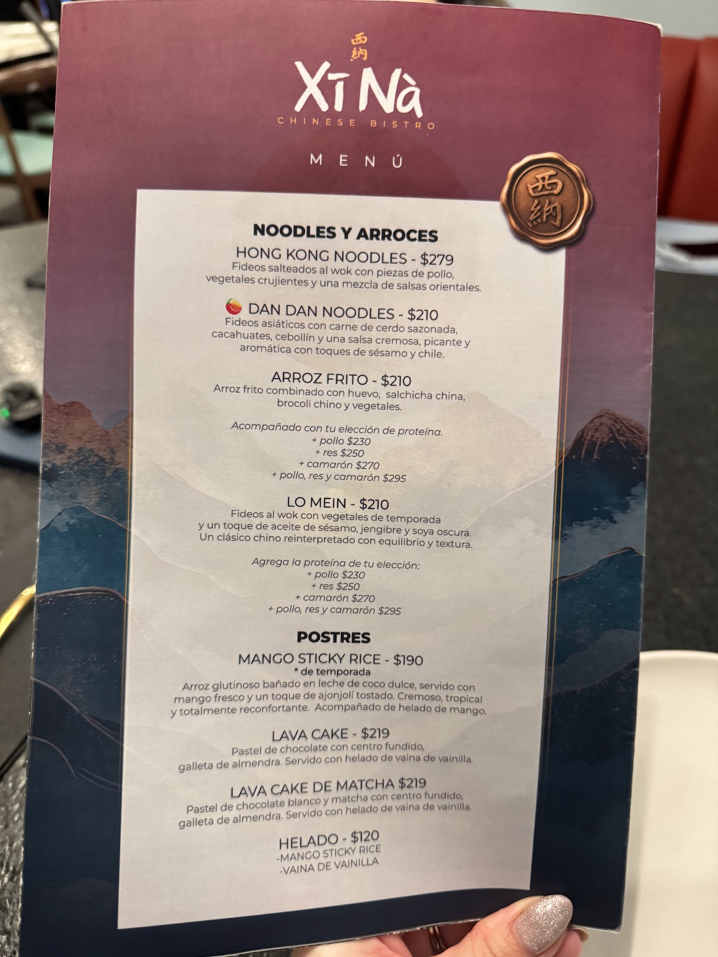 El lugar es agradable, con una decoración moderna y ese toque asiático. El servicio fue excelente: nuestro mesero, Jesús, fue atento y amable, se notaba que quería que pasáramos un buen rato. El pollo Kung Pao está delicioso, con el picante justo y un sabor muy equilibrado. Los noodles Dan Dan están bien, nada espectacular pero cumplen. Lo que no repetiría es el Orange Chicken, porque para mi gusto le faltó salsa y el pollo quedó un poco seco. Como en muchos restaurantes, la mixología eleva la cuenta; incluso las limonadas son costosas. Eso sí, tanto las limonadas como el té helado tienen un muy buen sabor… pero sigue siendo un vaso de limonada de más de cien pesos.
