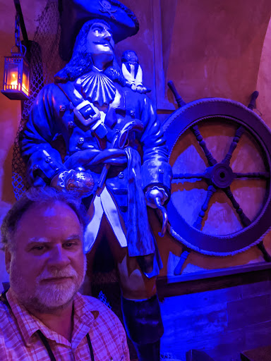 First full disclosure. I have partied at the owner's private bar several times through the years when I have visited Campeche. That said, if I passed him on the street I'm certain I wouldn't know him. When my brother-in-law led me into this place it blew me away! This in the best pirate themed place I've ever seen! They spent a lot of creative energy, time and money on the decor! Every detail is covered. They even painted the split head air conditioning unit to look like wooden treasure chests. The bigger than life pirate figures are amazing! So how about the food? We had a couple beers. They have XX on draft and the usual bottled stuff. Free snacks (lite botanas) are brought. We ordered one item to split. The Aguachile de Cameron. It was delishous! There are a few places in the "new world" that has real pirate history. Places like Tortuga, several islands in the carabbean, the southeastern costal states of USA and Campeche, Mexico! The old city was built with stone wall fortifications around it to ward of pirate raiders! Barqo 59 is a place were you can have fun and be entertained with all the pirate lore in bigger than life size! It's like Disneyland without the prices! This place is about a year old now and is an instant must visit when I bring family or friends to Campeche! Easy to find on Ave. 59 between the land door and the sea door! Inside the historic wall city. Except for the classic 15' high cielings you would never know this place was an old...