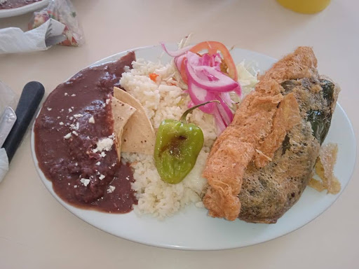 Read moreLa verdad no me gustó, la comida se me hizo sin sabor y eso de que te amontonan el guisado, los frijoles, el arroz y la ensalada en un plato mediano no es nada agradable a la vista, desgraciadamente fue lo único que encontramos abierto el día de nuestra visita. Pero no volveré. Otra cosa pésima que las personas que estaba rellenando de unas cubetas a las botellas de agua de sabor que te venden estaban sin CUBREBOCAS en plena pandemia,la verdad termino de...