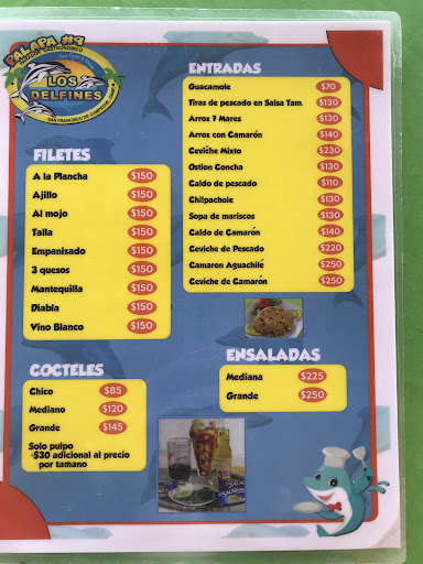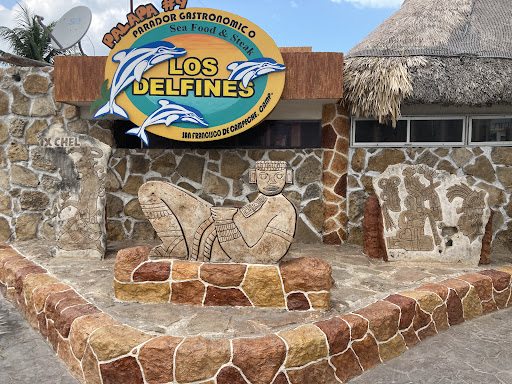 Los Delfines 🐬 es un rest con mucha gracia. Con un toque original. Es una palapas tradicional pero no es como cualquiera. Tiene su toque, su chispa ⚡️. La fachada es muy agradable a la vista, te invita a pasar, sin duda. El interior es un poco confuso sobre todo por la lona que está anclada al techo, supongo que es porque se mete el agua. No estoy seguro, tendrían que preguntar. Hay algunos elementos en la decoración que elimina lo bueno que tiene.
