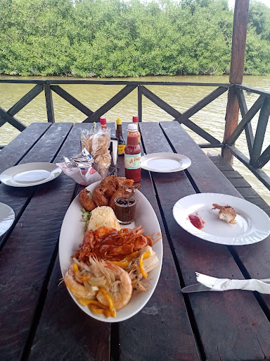 En cuanto a la comida, decidimos ordenar media hora antes de terminar el recorrido y reservamos una mesa en el muelle. Por lo que los muchachos de la tripulación se encargaron de comunicarse al restaurante para que alistaran todo. Una vez en el muelle nos llevamos la grata sorpresa de que nuestra mesa estaba servida, así como nuestros alimentos y bebidas que se encontraban en su punto perfecto para ser degustados. Ordenamos un kilo de camarón variado (al coco, a la mantequilla y a la diabla) los cuales fueron aderezados con una deliciosa salsa de manzana muy difícil de olvidar.