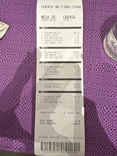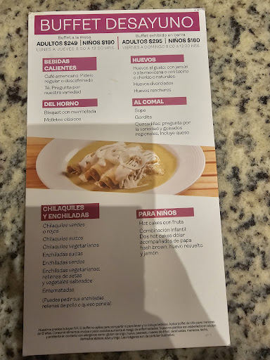 Read moreEl desayuno bufet es bueno pero poco variado, está muy bien la opción de los antojitos en comal que se prepara al momento, sin embargo la comida no es sobresaliente por lo que no considero que se corresponda al 100% con el precio del bufet o incluso ordenando a la carta. Tienen zona pero friendly y el servicio es muy bueno, el personal siempre es muy atento y esto es lo que...